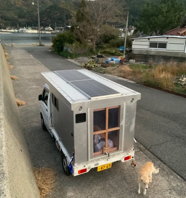 「旅の途中、最新のバンライフの冒険で撮ったスナップショット。」